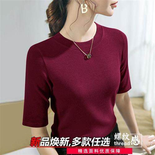 阔蝶好物分享打底衫春夏新款时尚T恤女士螺纹五分袖纯色短袖女装