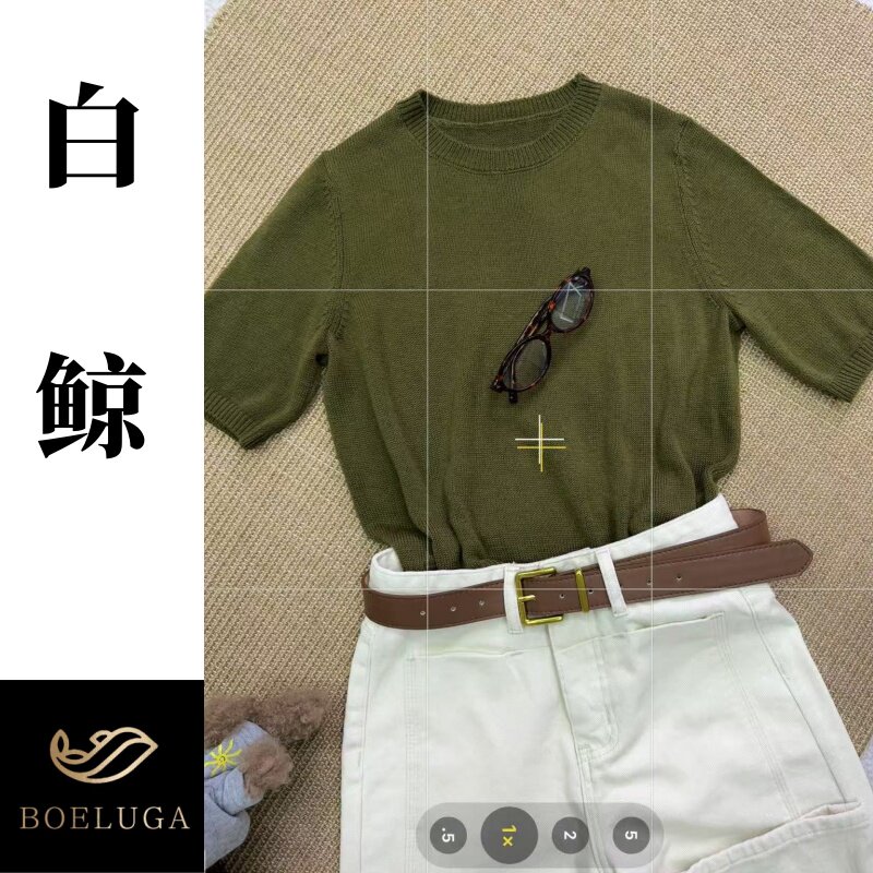 【白鲸】春款纯色短袖女通勤风毛针织衫ins休闲百搭简约韩版2533