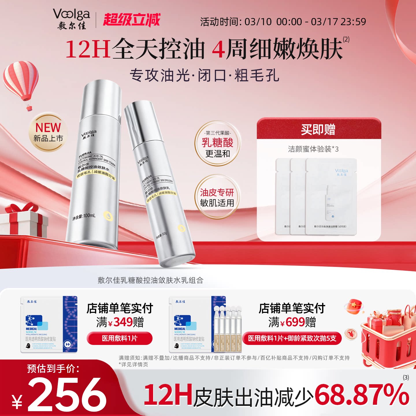 【磨皮水乳】敷尔佳乳糖酸控油敛肤水乳精华面膜祛痘控油收缩毛孔