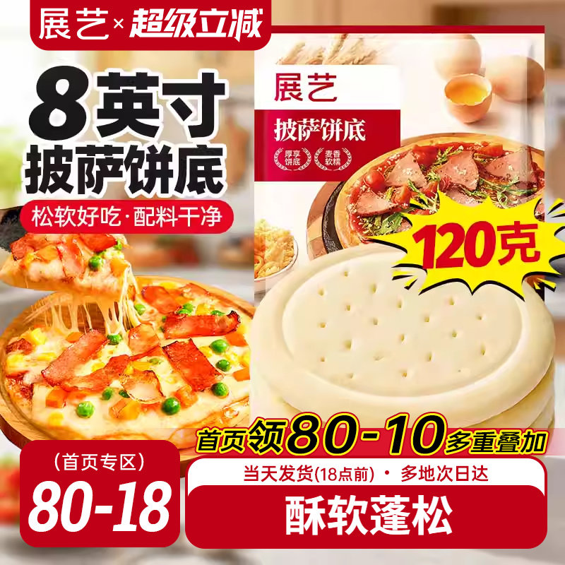 展艺披萨饼底加热即食半成品空气炸锅芝士榴莲披萨胚饼皮家用食材