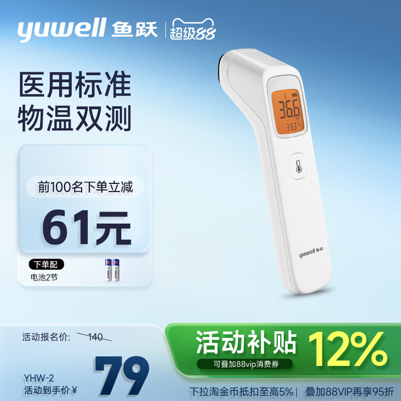 鱼跃额温枪双探头电子体温计无水银家用精准医用老人儿童专用YT-1