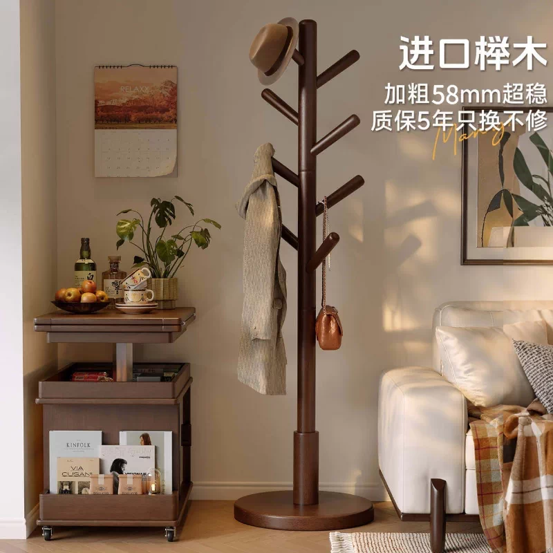 实木挂衣架卧室落地家用加厚立式榉木衣帽架办公室挂衣服置物架子