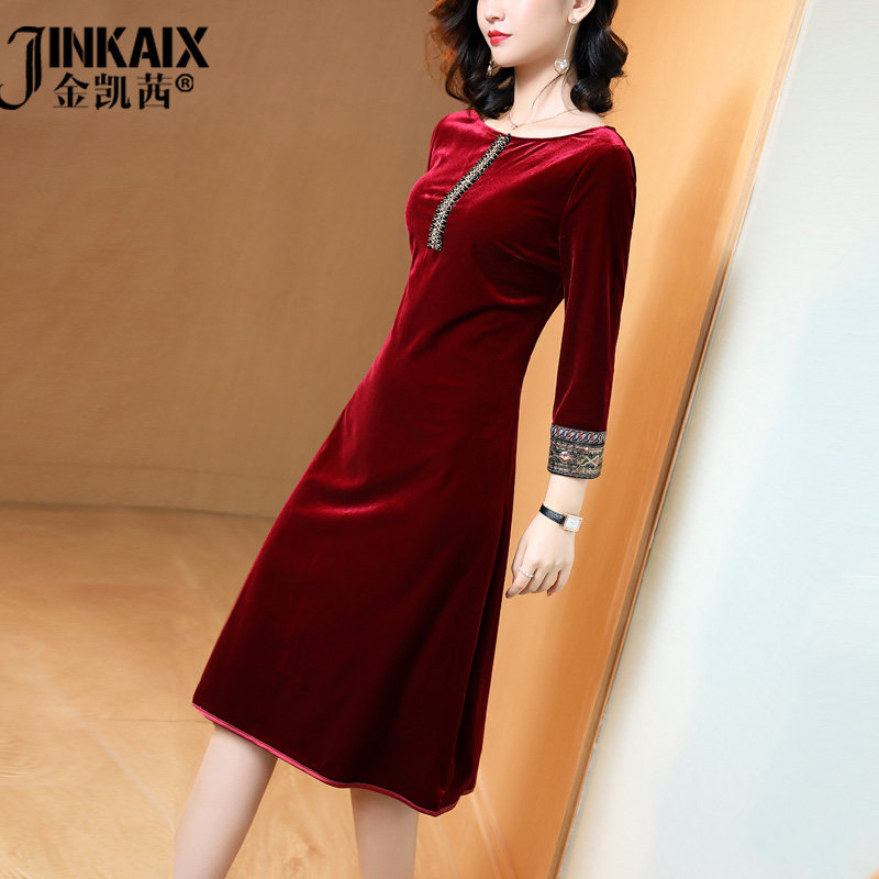 胖mm连衣裙显瘦复古减龄2025秋冬新款红色金丝绒中长款过膝宴会服