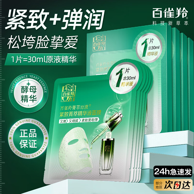 百雀羚面膜紧致菁萃原液酵母精华补水保湿抗皱锁水贴片旗舰店正品