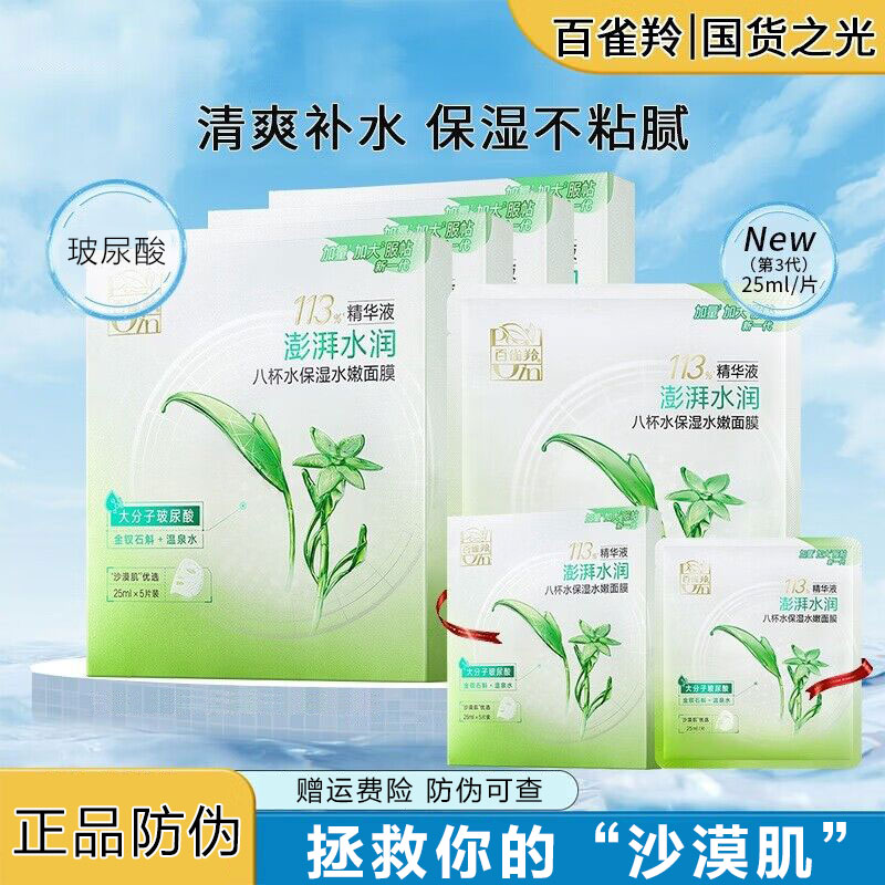 百雀羚面膜八杯水保湿大分子玻尿酸加量加大服帖护肤品官方正品女