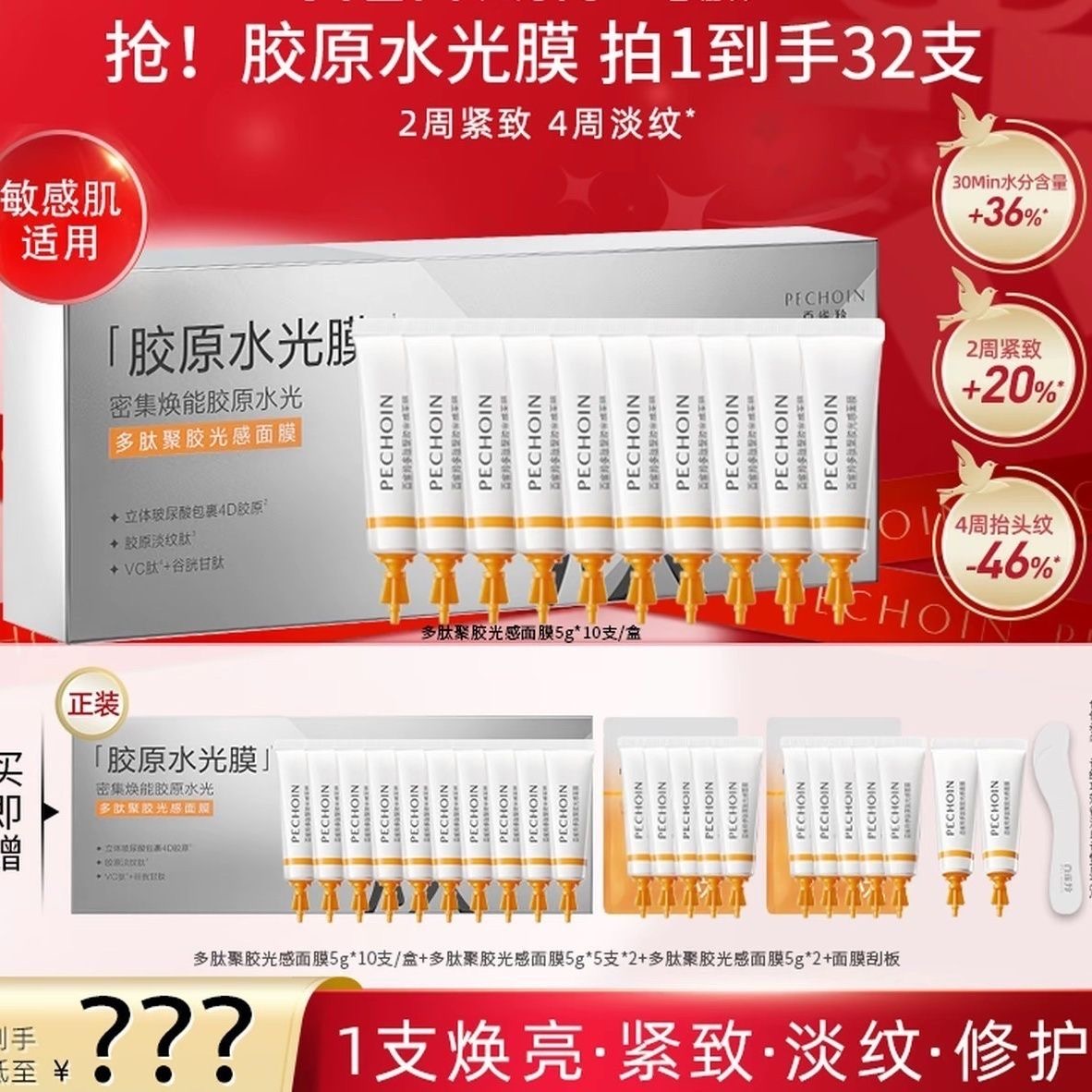 【到手32支】百雀羚面膜光感面膜百雀羚胶原灌注水光面膜涂抹面膜