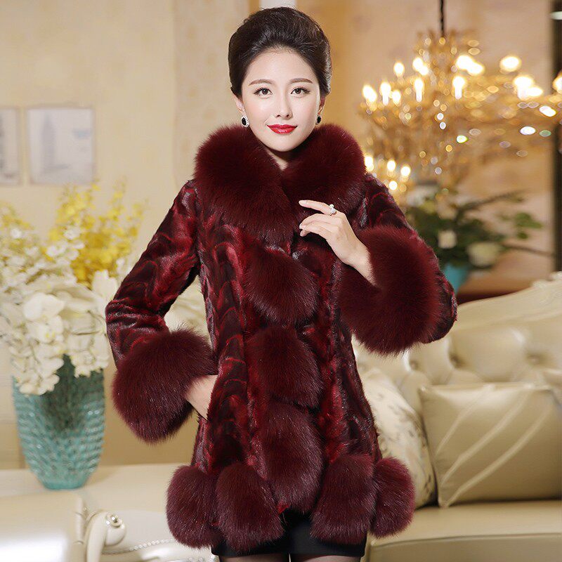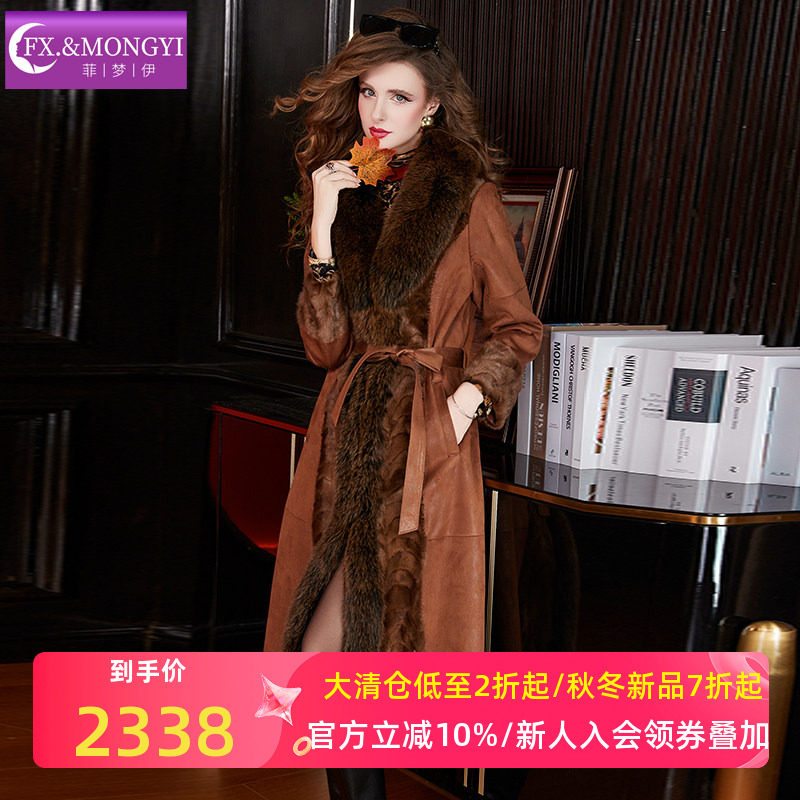 菲梦伊狐狸毛领水貂毛整貂皮草外套女冬季高档加厚中长款贵妇大衣