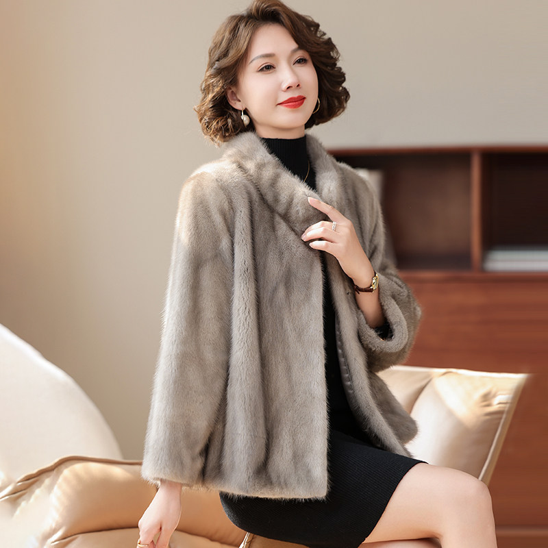 海宁水貂皮大衣女短款2025新款冬季整貂皮草年轻款中年妈妈装外套