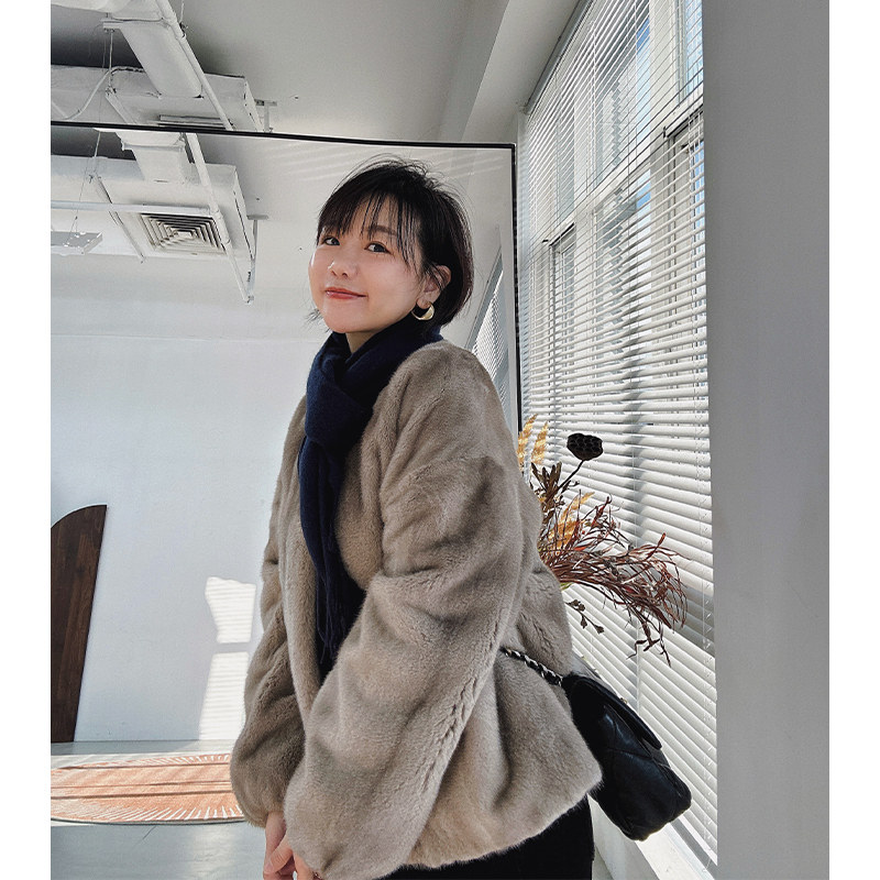 整貂皮草海宁皮毛一体整皮短款小个子水貂毛圆领外套女冬毛毛大衣