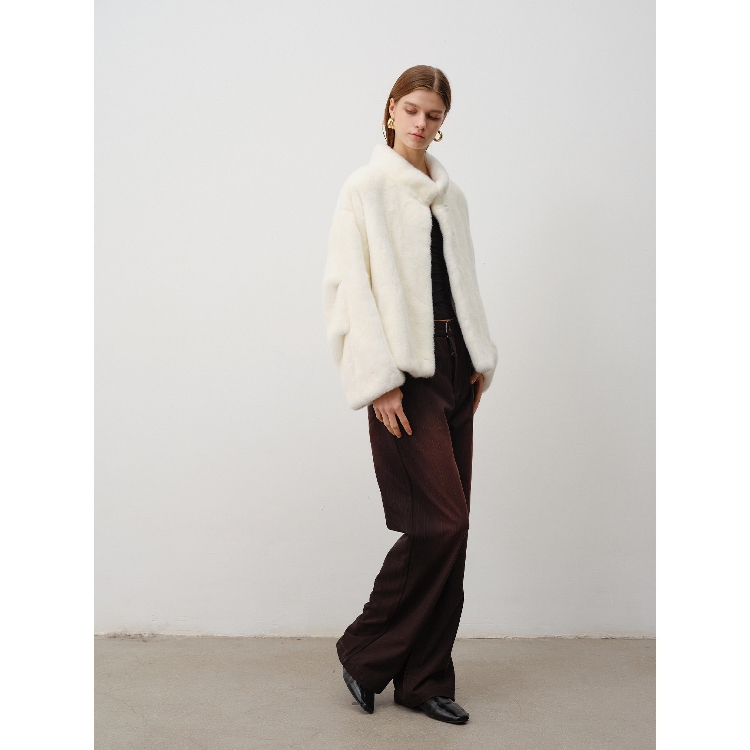 北欧传奇|进口貂皮母貂整貂皮草白色立领短款设计感袖子水貂外套