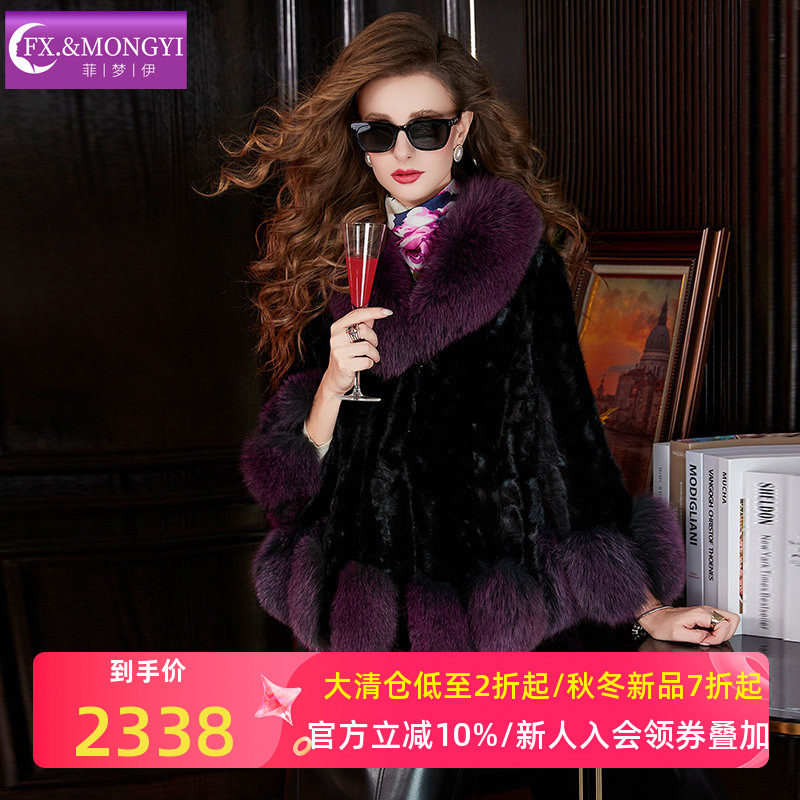 菲梦伊貉子毛领水貂毛整貂皮草外套女冬季轻奢高档加厚披肩款上衣