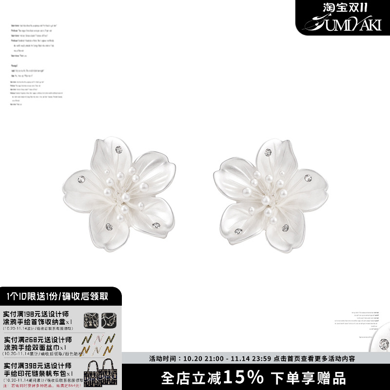 SUMIYAKI 苍白诉说系列 纯白鸢尾花耳环小众设计轻奢高级感耳饰女