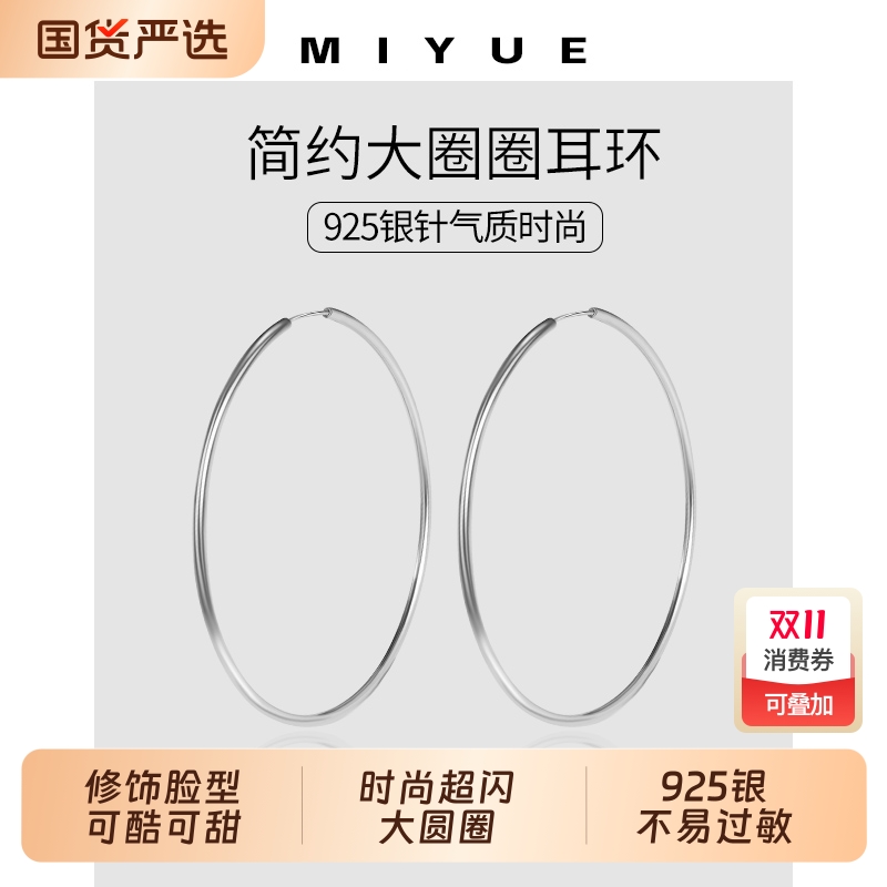 S925银针赵露思许妍同款简约金属大圈圈hoop耳环素圈时髦潮人气质