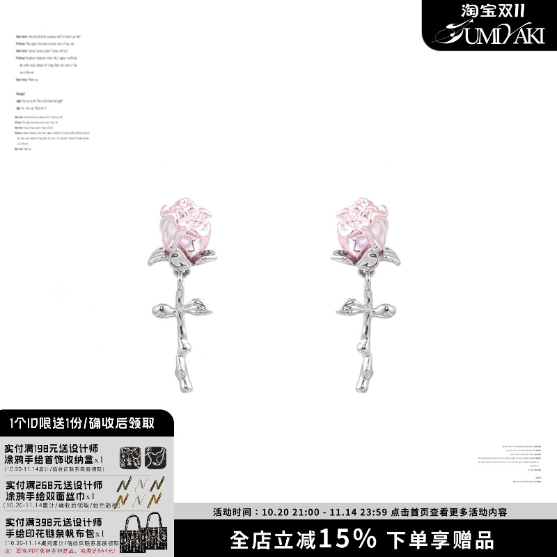 SUMIYAKI 金属少女粉玫瑰小耳环百搭甜酷显白耳饰精致小巧耳钉