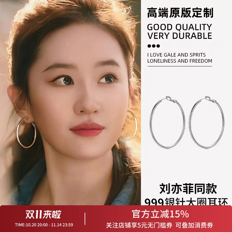 刘亦菲同款大圈耳饰耳夹耳圈纯银圈圈素圈耳环2025新款爆款高级感