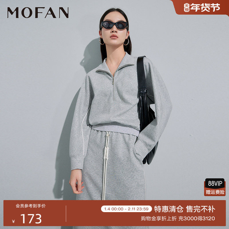 MOFAN摩凡春秋新款时尚气质巴黎灰高领卫衣女高腰半身裙两件套装