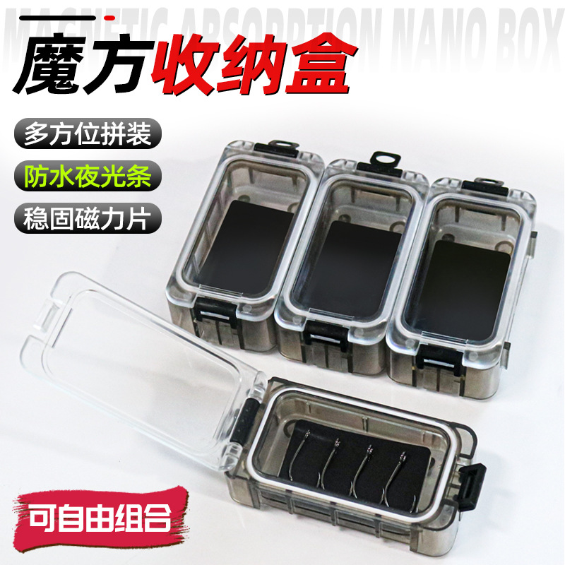 魔方路亚配件盒防水密封夜光磁吸鱼钩假饵小配件饵盒便携拼接组合