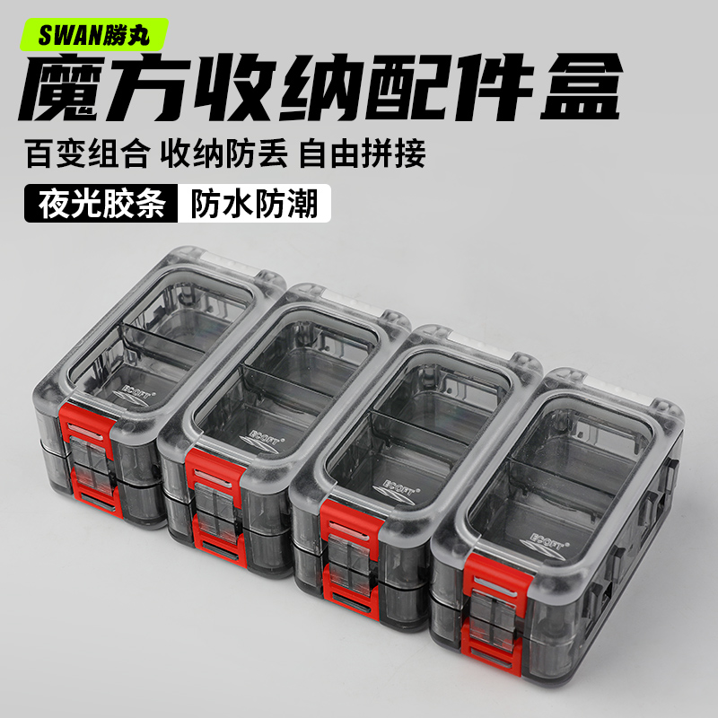 热销友渡路亚配件盒防水密封路亚小饵盒夜光拼接组合魔方钓鱼收纳