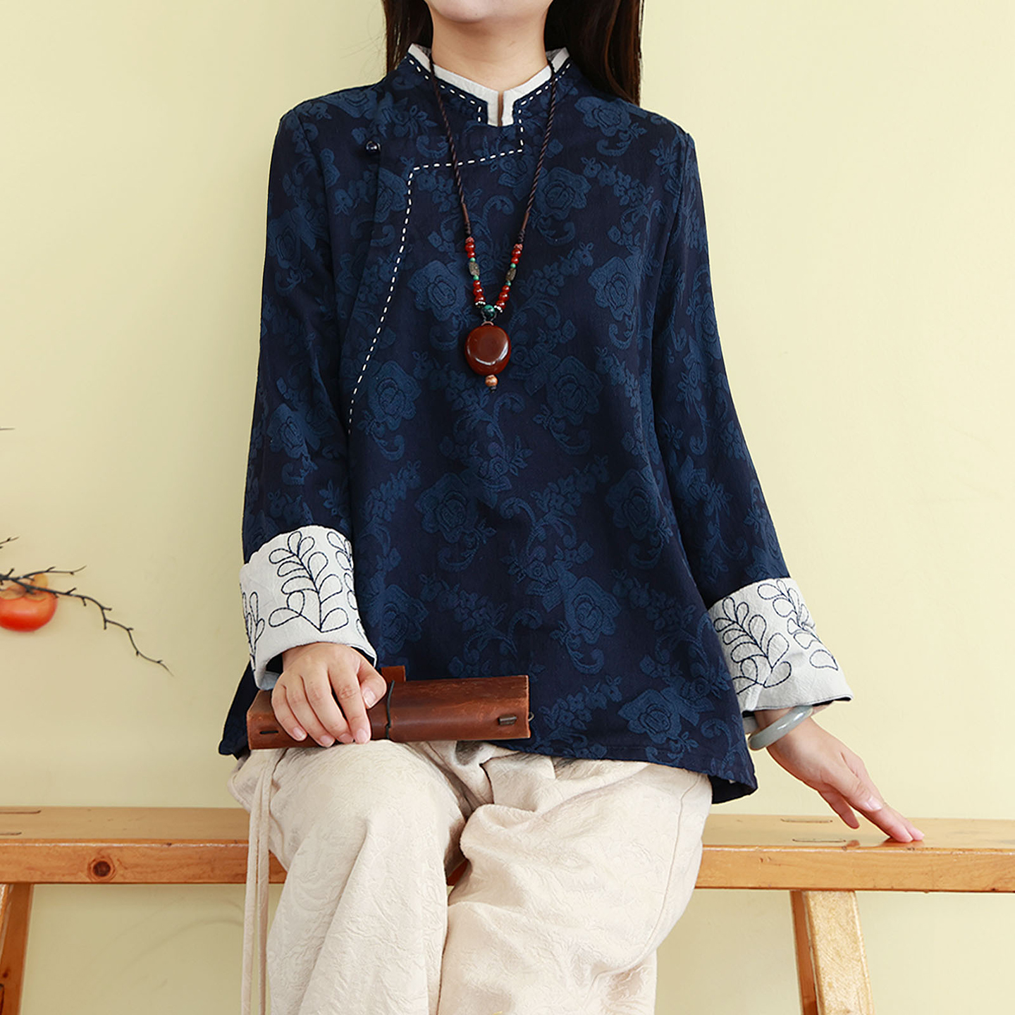 - 立领衬衫女 棉麻宽松