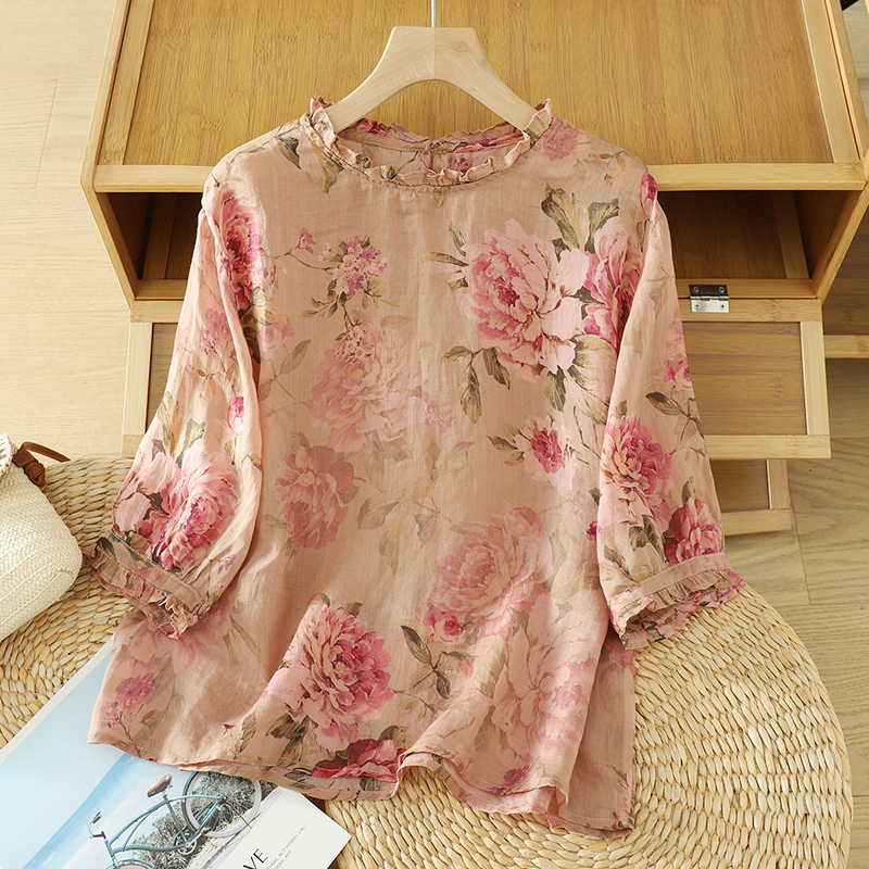 - 花衬衣棉麻女