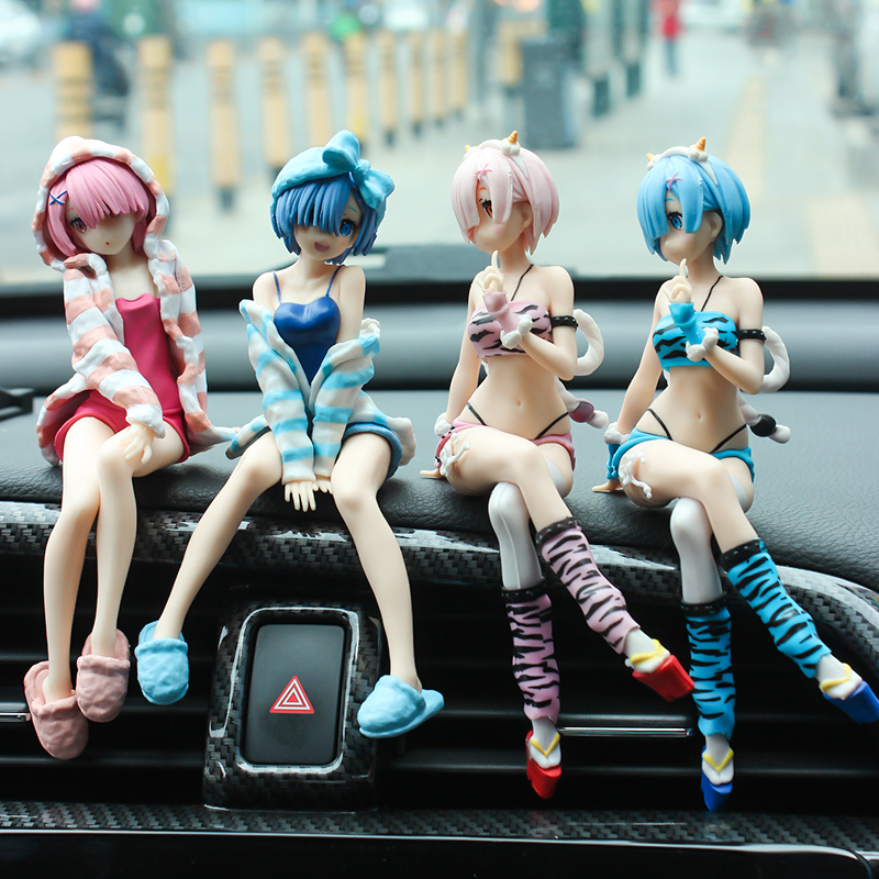 车载拉姆蕾姆手办车内饰品摆件中控台汽车装饰用品情侣创意美少女