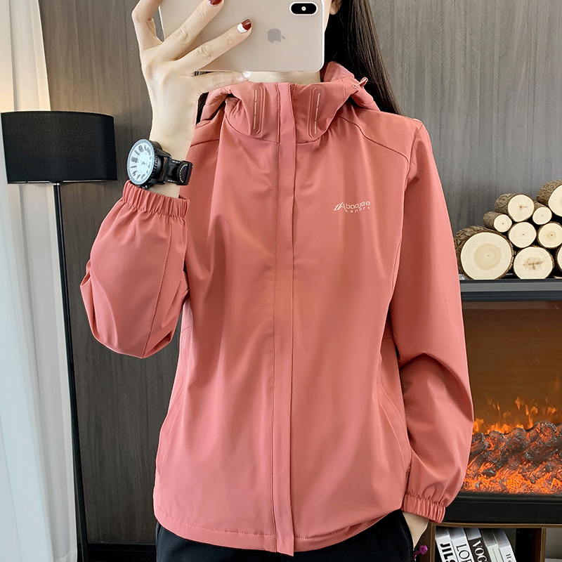 秋季户外冲锋衣女薄绒弹力透气外套防风防水软壳衣套装显瘦登山裤