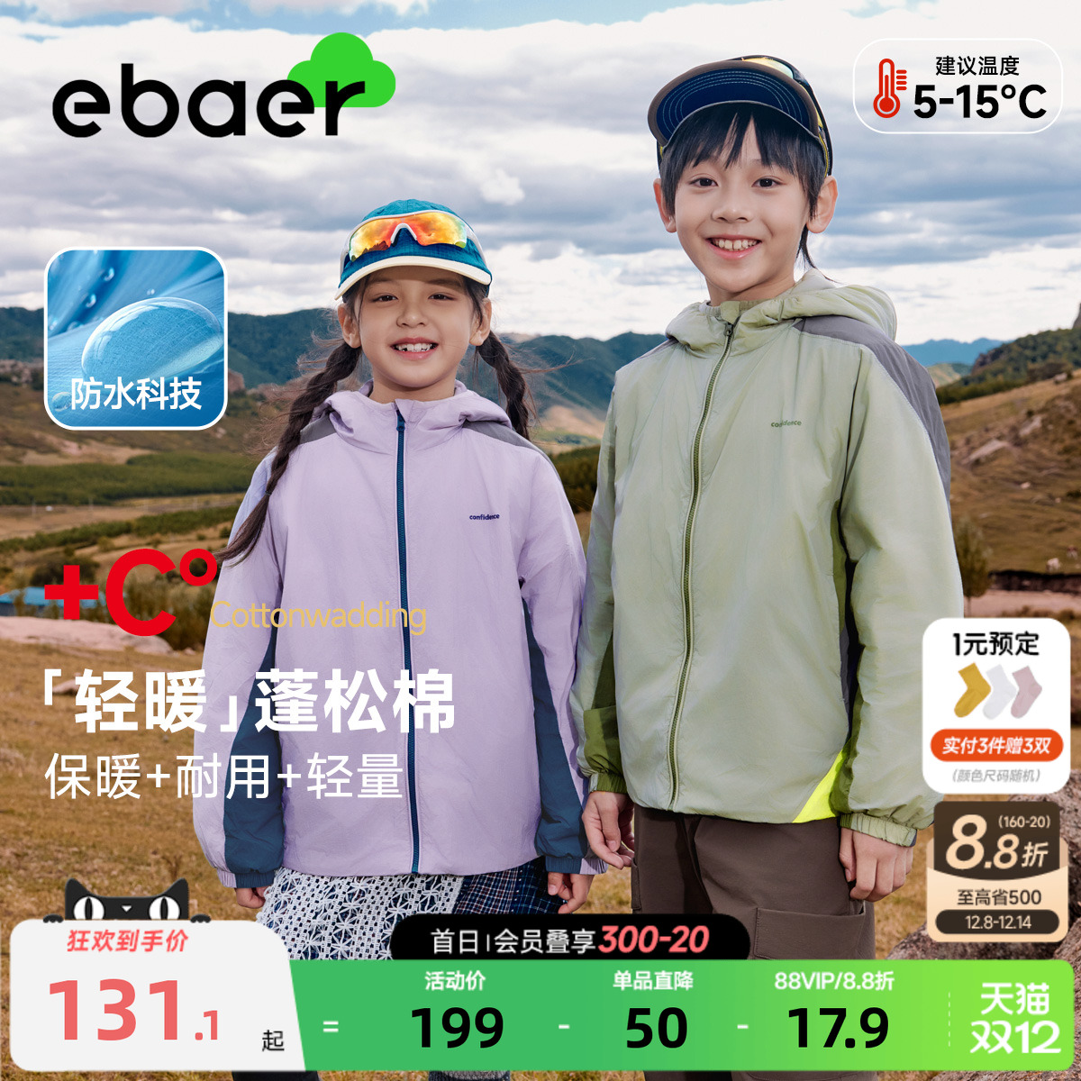 ebaer儿童软壳轻薄棉服2025秋冬新款男女童防水保暖连帽外套棉衣