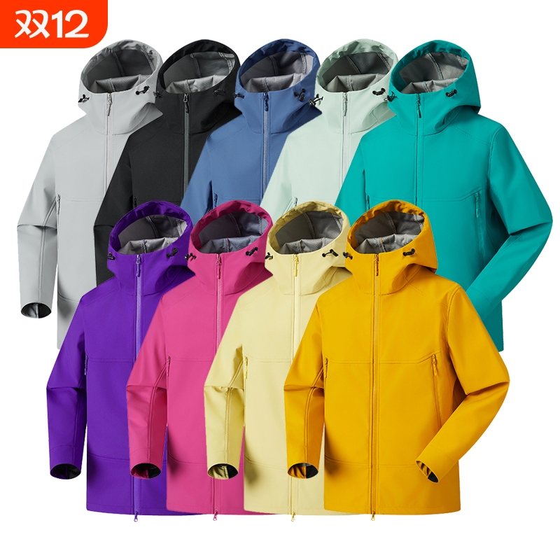 秋冬季冲锋衣外套女户外防风防水软壳衣定制印logo短款登山服男