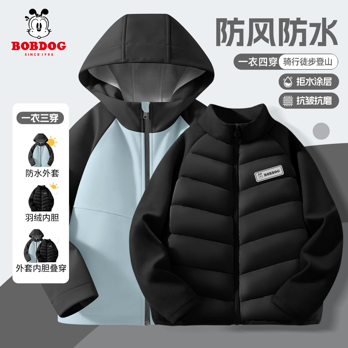 巴布豆童装男外套三合一儿童外套秋冬装2025新款防风防水软壳上衣