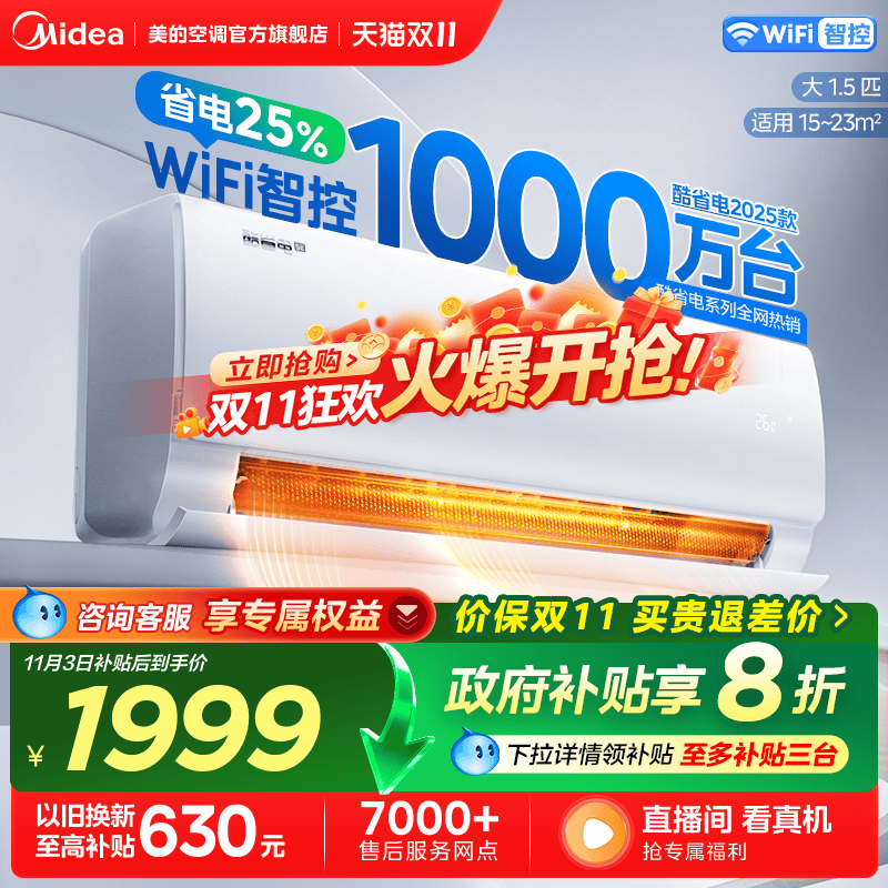 美的空调酷省电2025版大1.5匹新一级能效家用变频挂机官方旗舰店