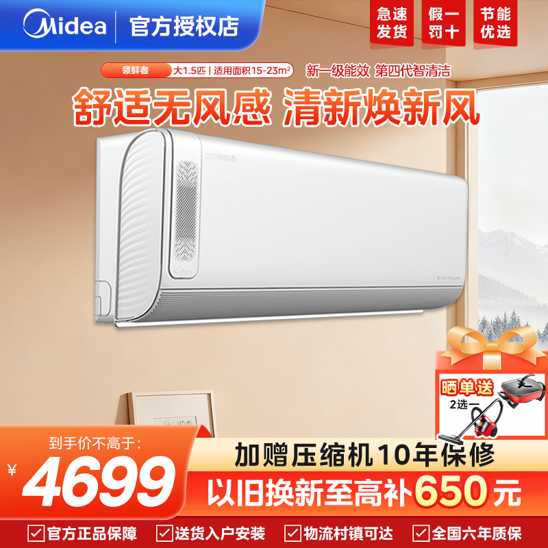 美的空调1.5匹一级能效新风冷暖变频卧室除醛鲜氧循环静音挂机