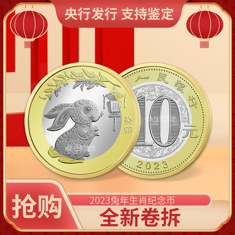 2023年兔年生肖纪念币10元面值 生肖兔单枚整盒公博鉴定评级70分