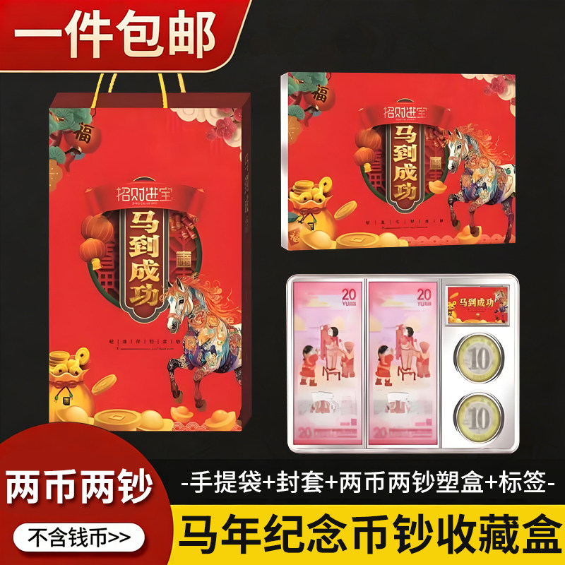 马年两币两钞盒纪念钞收藏盒生肖纪念币保护盒纸币收纳盒钱硬币壳
