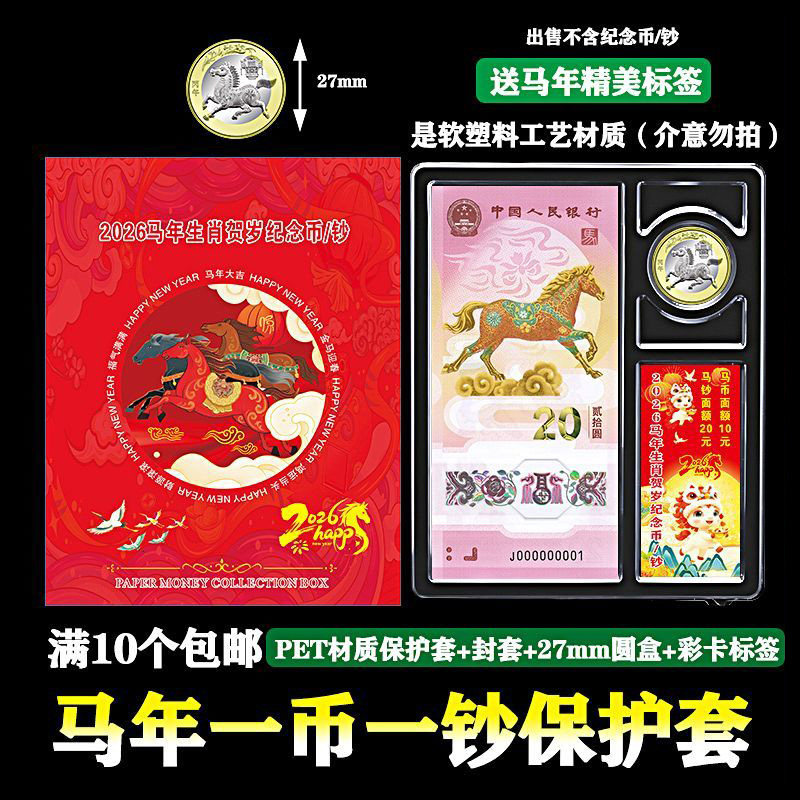 2026马年生肖纪念币1币1钞收藏盒马年纪念钞收纳礼品册钱币保护套