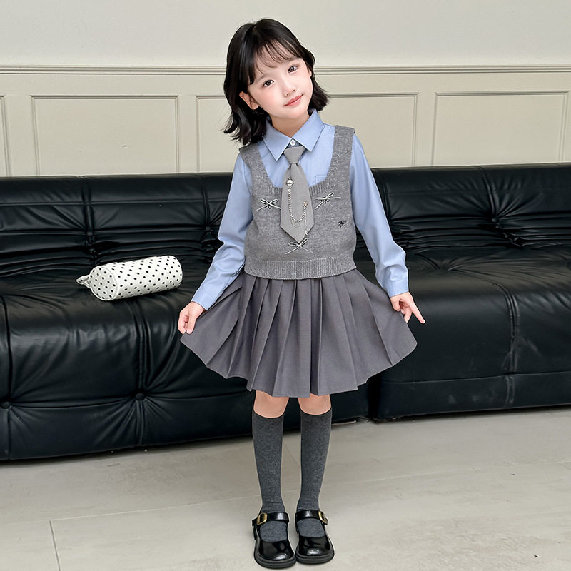 女童学院风套装2025秋冬新款洋气毛衣外套百褶裙儿童卡通朱迪衣服