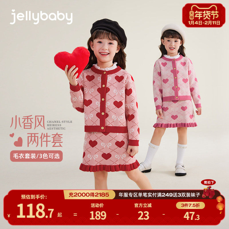 暇步士童装女童毛衣套装25秋冬新品大童新年装套裙儿童甜美两件套