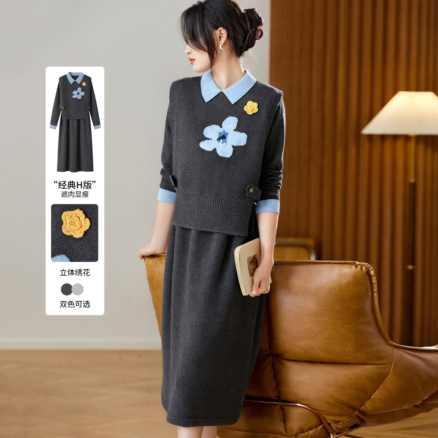 - 针织两件套裙
