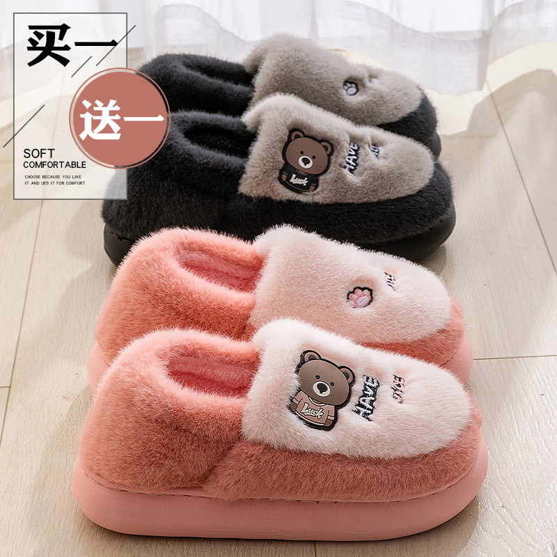 买1送1棉拖鞋女包跟冬季2025新款室内家居厚底保暖毛绒情侣棉鞋男