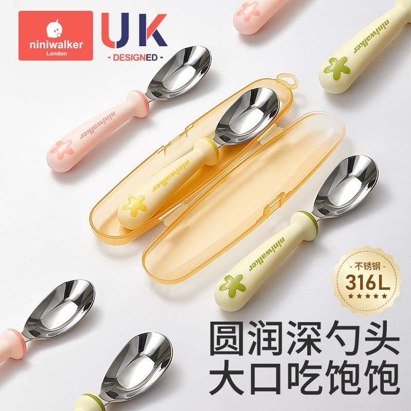 科巢宝宝自主进食辅食勺子316L不锈钢婴儿学吃饭训练儿童专用短柄