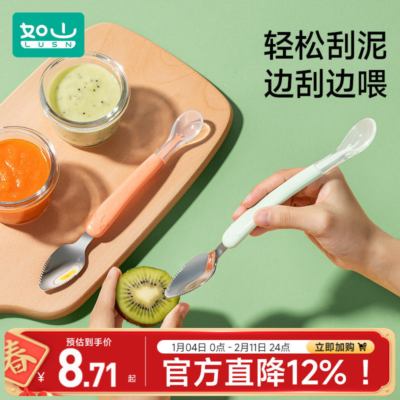 如山316不锈钢刮泥勺婴儿辅食勺果泥勺子宝宝吃水果挖泥辅食工具