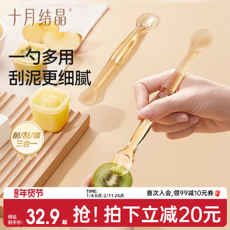 十月结晶双头刮泥勺婴儿辅食勺新生宝宝专用挖果泥勺水果辅食工具