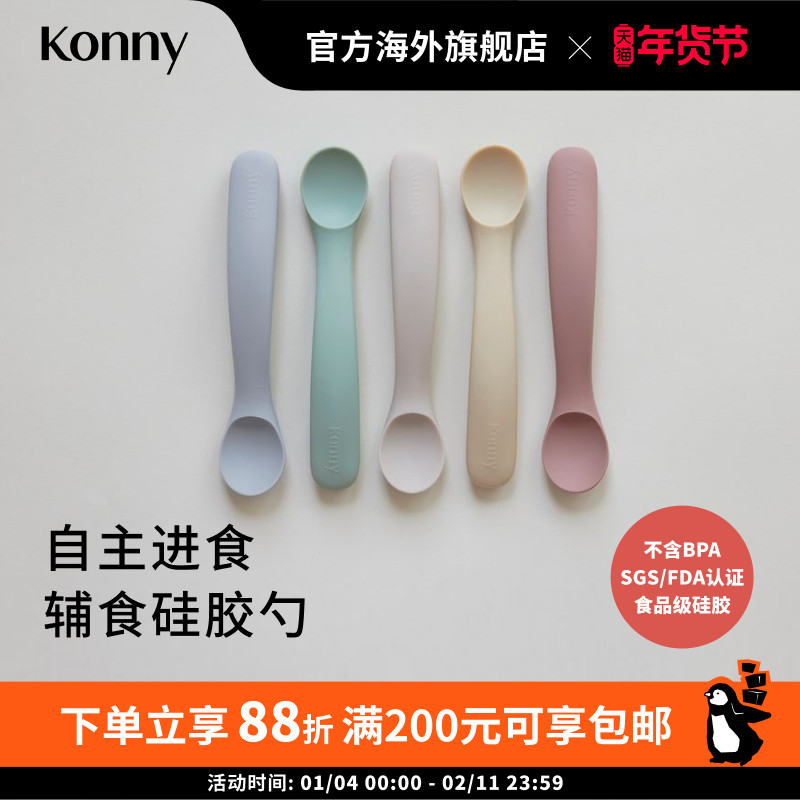 Konny硅胶婴儿辅食勺进口婴儿软勺宝宝自主进食勺铂金硅胶训练勺