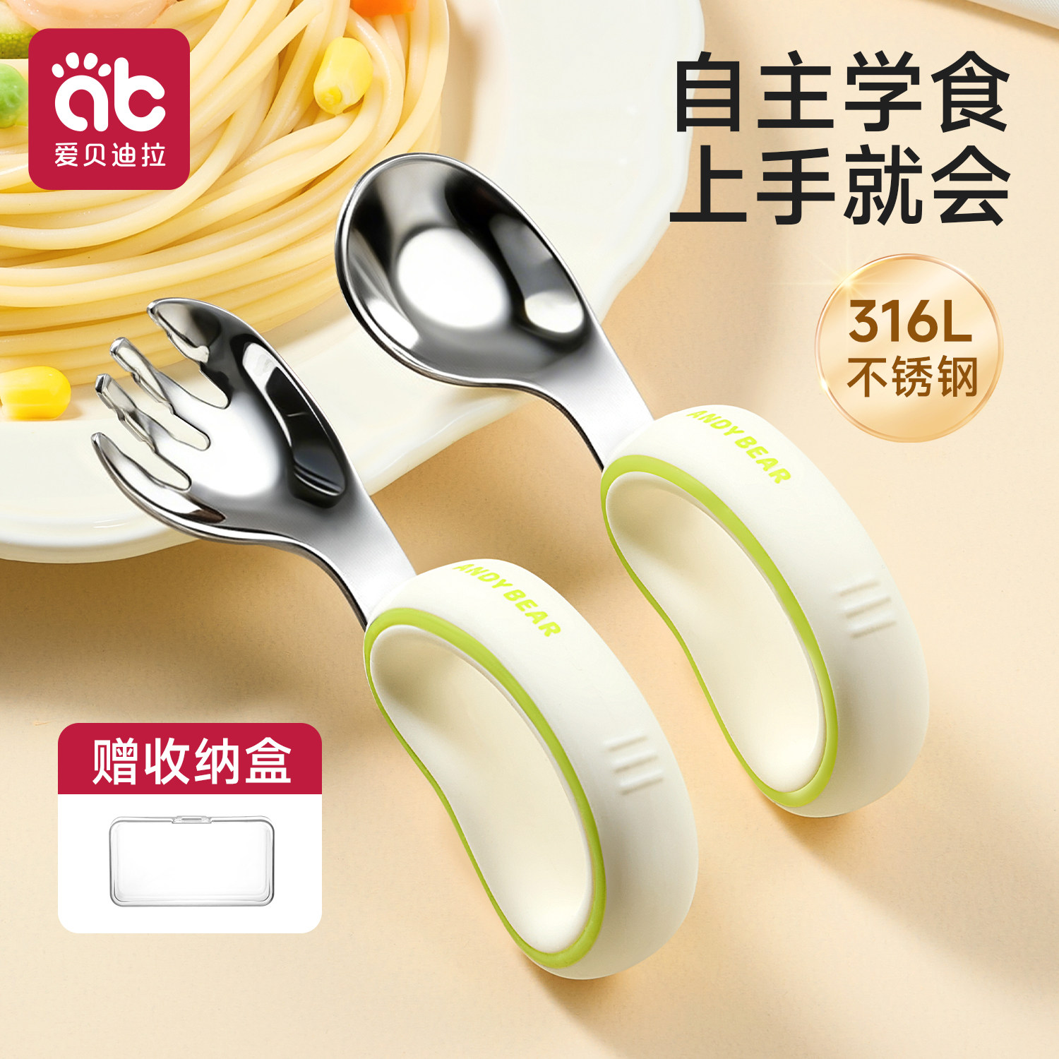 英氏宝宝学吃饭训练勺子弯头叉勺婴儿辅食勺练习自主进食儿童餐具