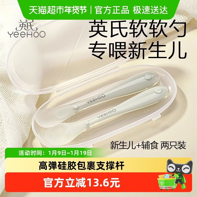 英氏新生婴儿辅食勺硅胶勺子喂水米粉辅食餐具初生宝宝硅胶软软勺