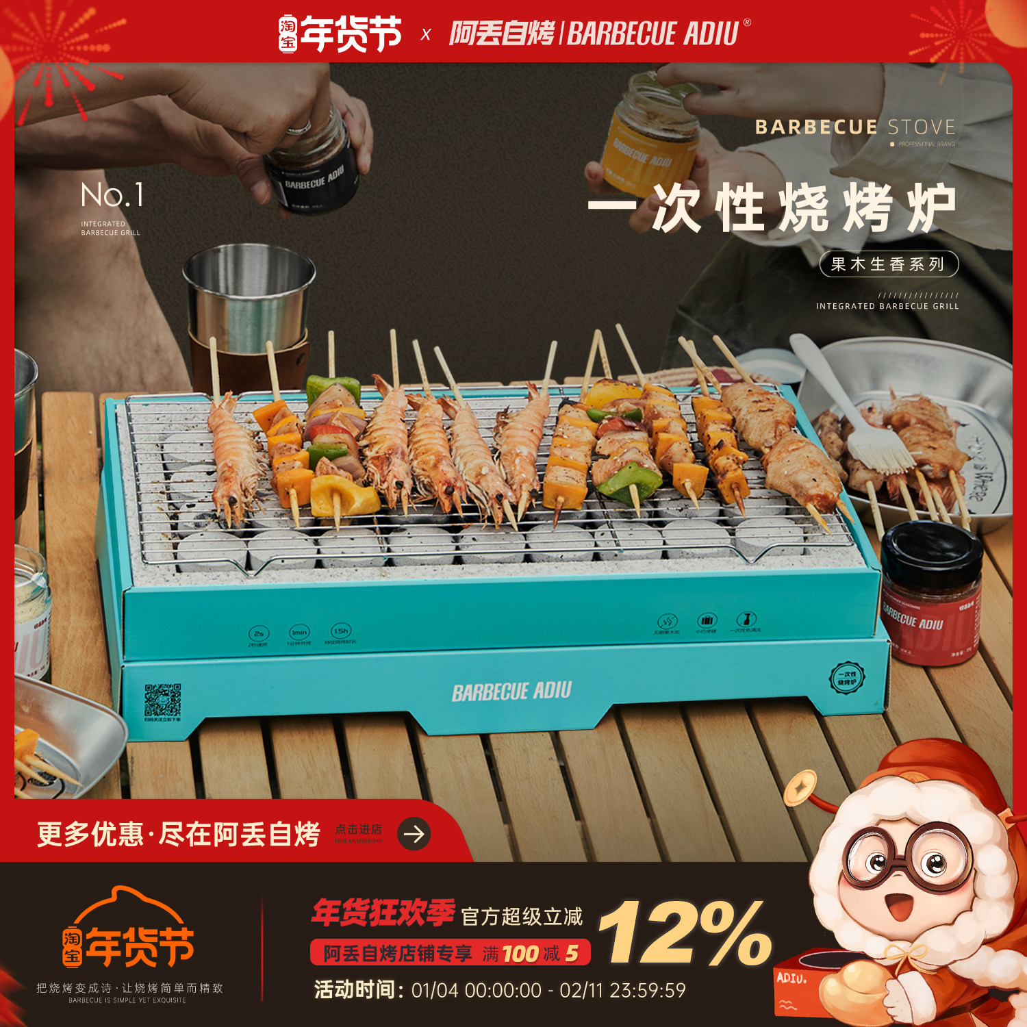 阿丢自烤一次性烧烤炉家用户外烧烤架碳烤炉露营小型便携烧烤炉子