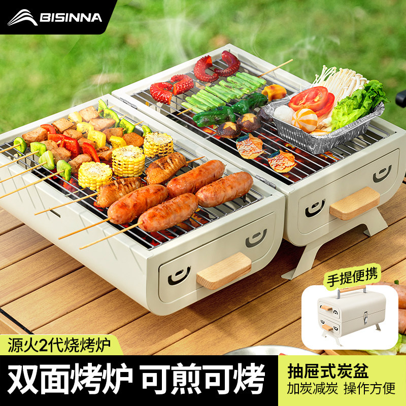 烧烤炉家用户外烧烤架不锈钢烤肉炉子室内木炭无烟烤串便携抽拉炉