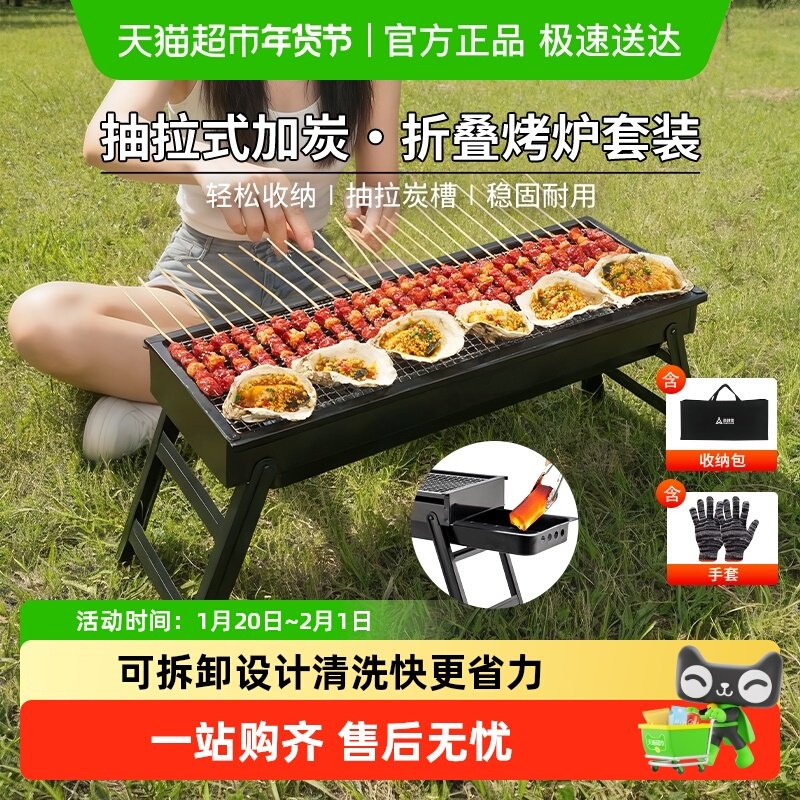 北山狼烧烤炉子家用户外烧烤架便携折叠烤肉木炭碳烤围炉煮茶套装