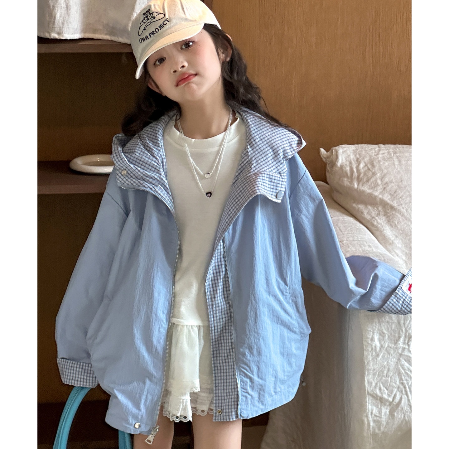 外套女童春秋款2026新款洋气连帽夹克女孩中大童宽松双面穿风衣潮