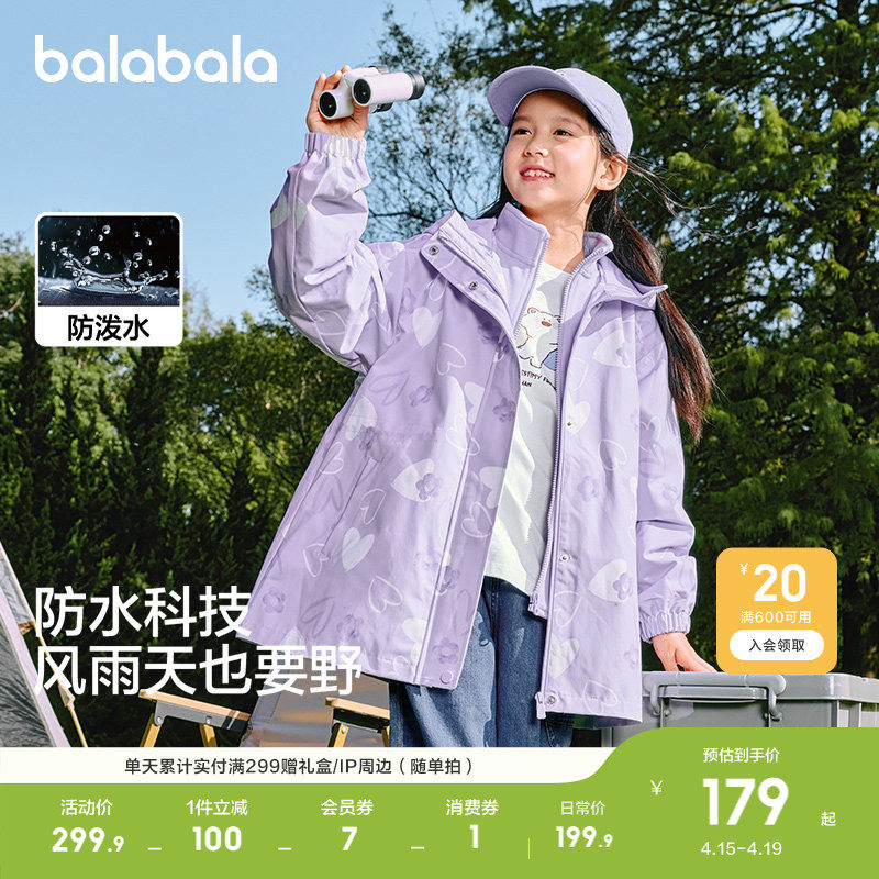 巴拉巴拉儿童外套男童女童户外春秋季款童装中大童宝宝运动风衣厚