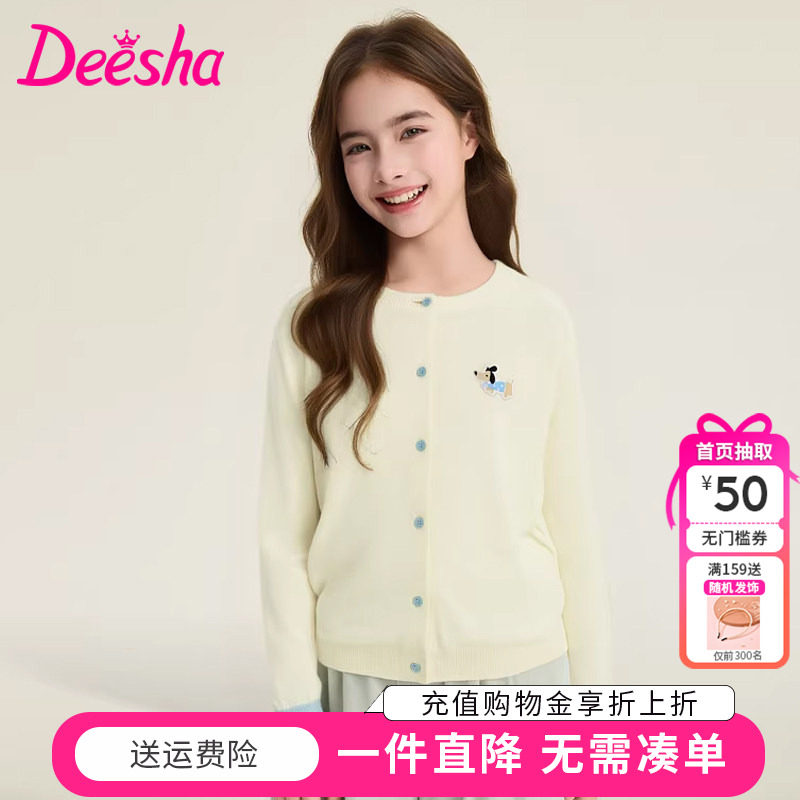 笛莎童装女童针织衫官方春秋新款中大童儿童开衫毛衣外套百搭宝宝
